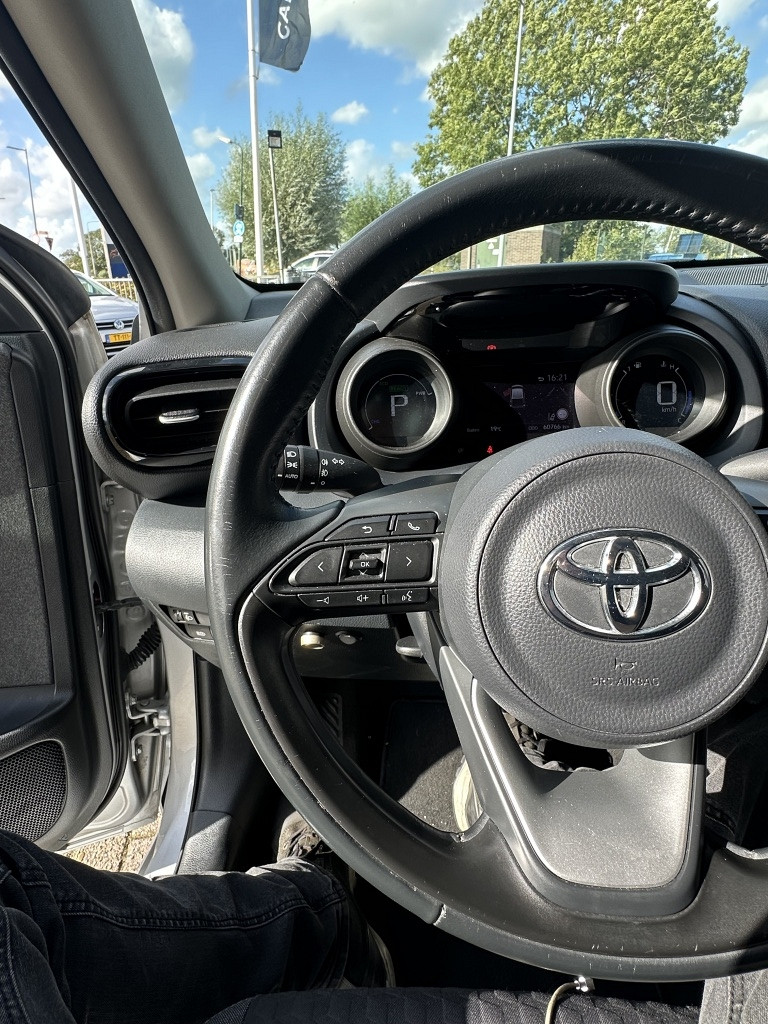 Zoals u mag verwachten van deze Toyota Yaris is hij uitgerust met een reeks aan actieve veiligheidssystemen. Dat de auto steeds meer taken van de bestuurder overneemt, merkt u bijvoorbeeld aan het systeem voor verkeersbord-detectie in deze auto. Het Lane-keeping systeem zorgt voor een automatisch constante positie binnen de rijstrook. Afdwalen is uitgesloten. De sensor van het forward collision warning-systeem registreert permanent de afstand tot voorliggers en grijpt in als een botsing dreigt. In deze Toyota vinden we verder een hill hold functie, Abs - anti blokkeer systeem met brake assistant en bandenspanningcontrolesysteem.