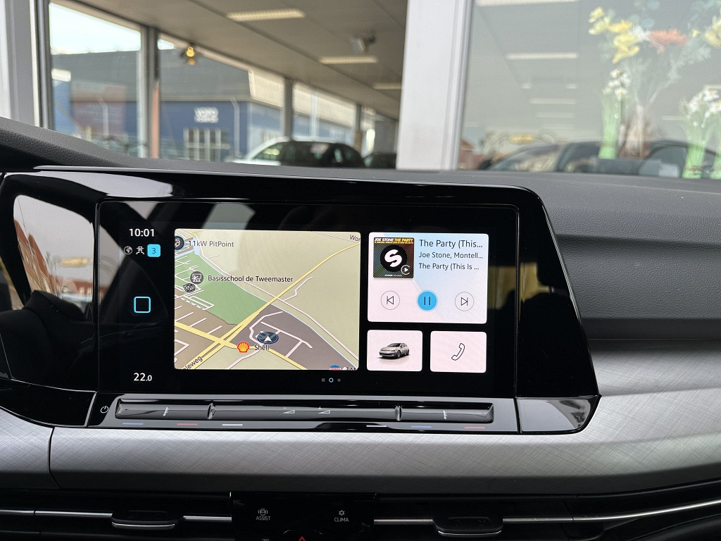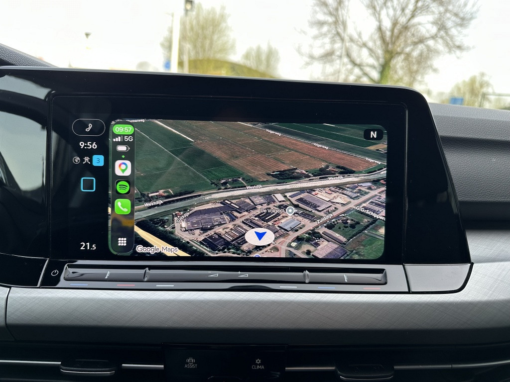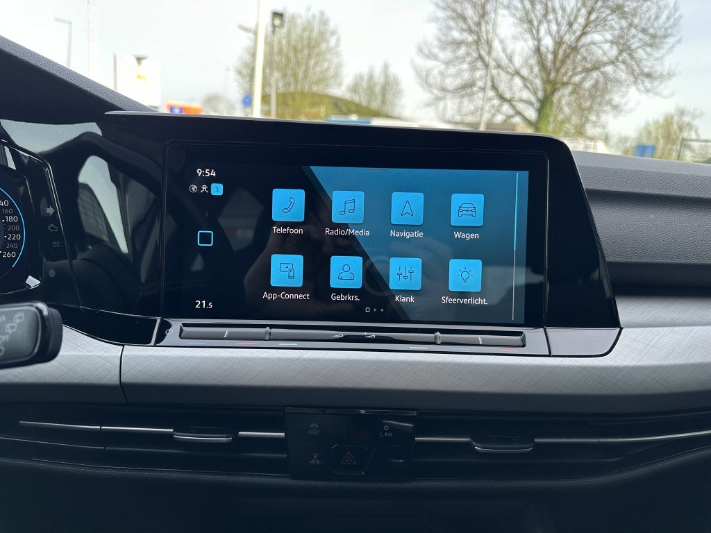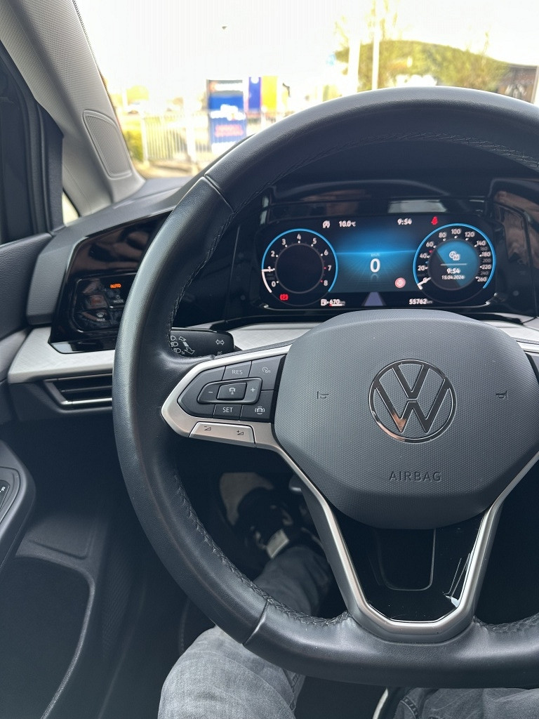 Adaptive cruise control houdt de ingestelde snelheid vast en houdt automatisch afstand tot uw voorligger. Vanaf elke plek contact maken met deze auto: dat kan met behulp van remote services, die u simpel activeert met uw smartphone. U kunt tijdens de rit uw ogen steeds op de weg houden, want het audiosysteem (met dab!) en het navigatiesysteem kunt u bedienen vanaf het stuur. Onderweg de smartphone opladen gaat helemaal zonder snoeren, door de draadloze telefoonlader. Deze Volkswagen Golf denkt vooruit als u van plan bent af te slaan. De kruisend verkeer detectie calculeert en analyseert het tegemoetkomende verkeer en waarschuwt als het risico op aanrijding bestaat. Deze Volkswagen is voorzien van automatische airconditioning, parkeersensoren achter, regensensor, keyless entry, automatisch dimmende spiegels en lederen stuur.